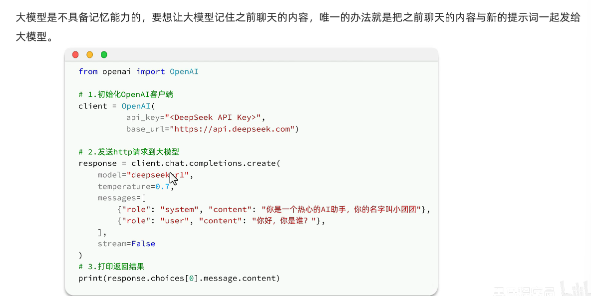 所以如果想要大模型上下文会进行记忆就需要加入这么一个角色。