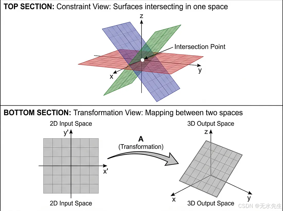 这个简单的方程可以有两种截然不同的解释,每一种都揭示了不同类型的"线性"。理解这种二元性对于理解线性代数在不同领域的应用至关重要------从解决工程问题到理解神经网络。
