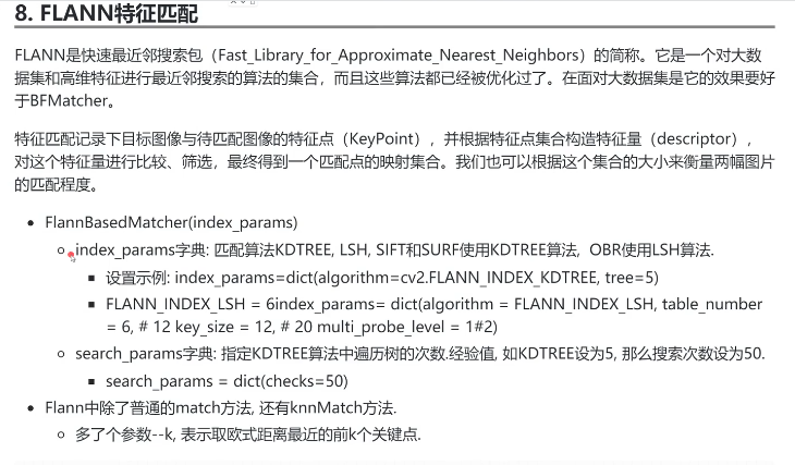 FLANN特征匹配与BF特征匹配基本相似,不同处在于匹配器创建及参数,本章仅介绍不同之处,相同处参考章38-BF特征匹配。