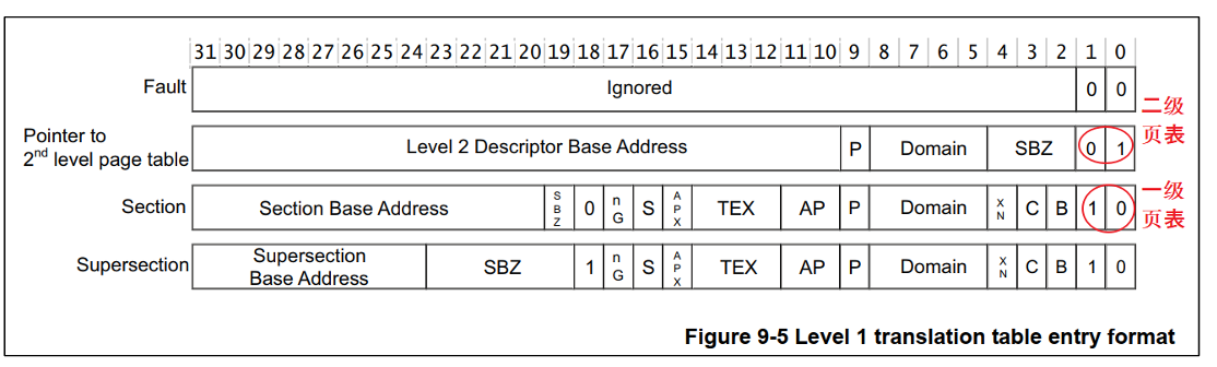 - 因此,页表项中只存储物理地址的 bit[31:20],共 12 位 ,代表一个 1MB 对齐的物理地址。