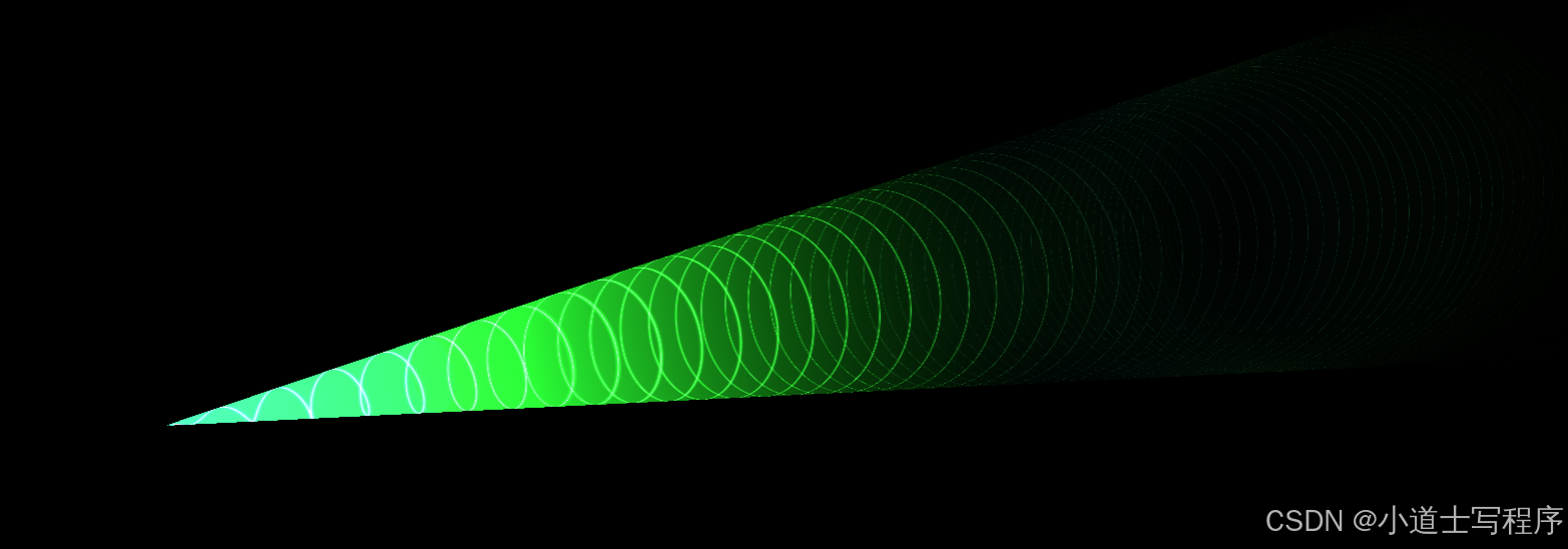 - 螺旋臂计算(spiralOnSurface 函数):基于交点的 3D 坐标,计算螺旋臂的相位、宽度和亮度蒙版,实现 "扫描臂" 效果。
