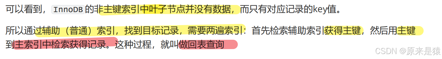 在InnoDB中,表数据本身就是按B+树组织的,这棵树的叶子节点存放整行数据。这种索引叫做聚簇索引。