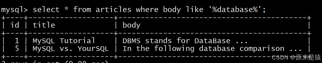 fulltext (title, body) -- 在title和body上创建联合全文索引