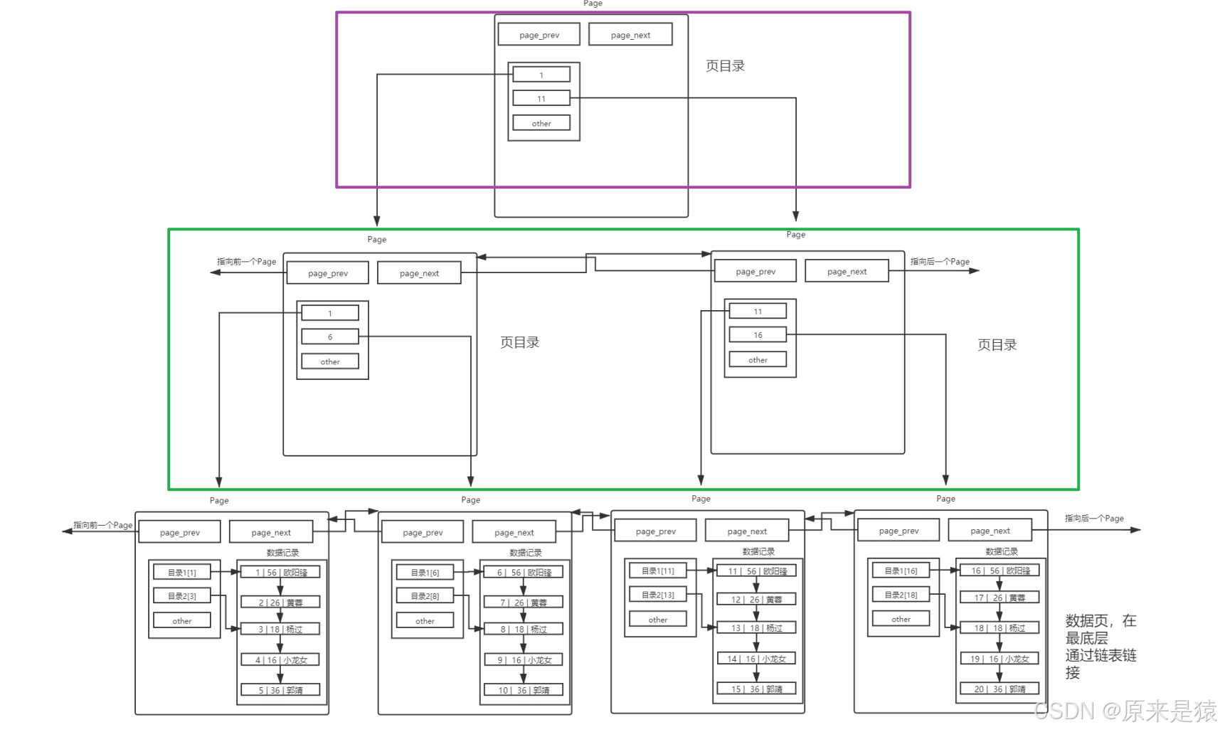 - 但是,我们也可以看到,**现在的页模式内部,实际上是采用了链表的结构,**前一条数据指向后一条数据,本质上还是通过数据的逐条比较来取出特定的数据。
