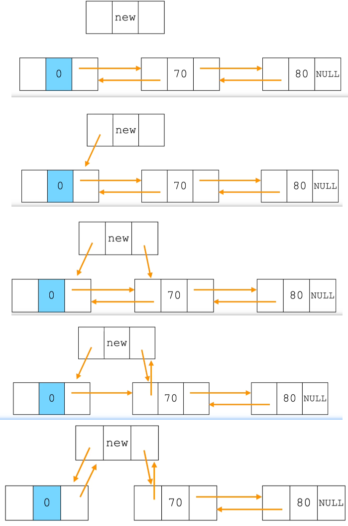 head->next = head; head->prev = head; - 头插法中:将