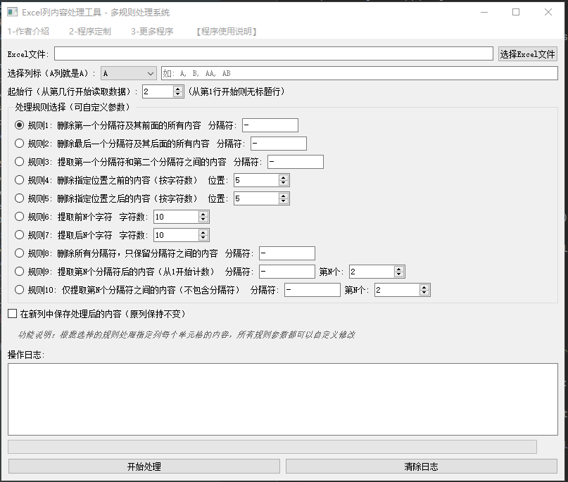 规则够用: 支持截取、删除、提取、替换分隔符等十种常见规则,常见需求都能搞定。