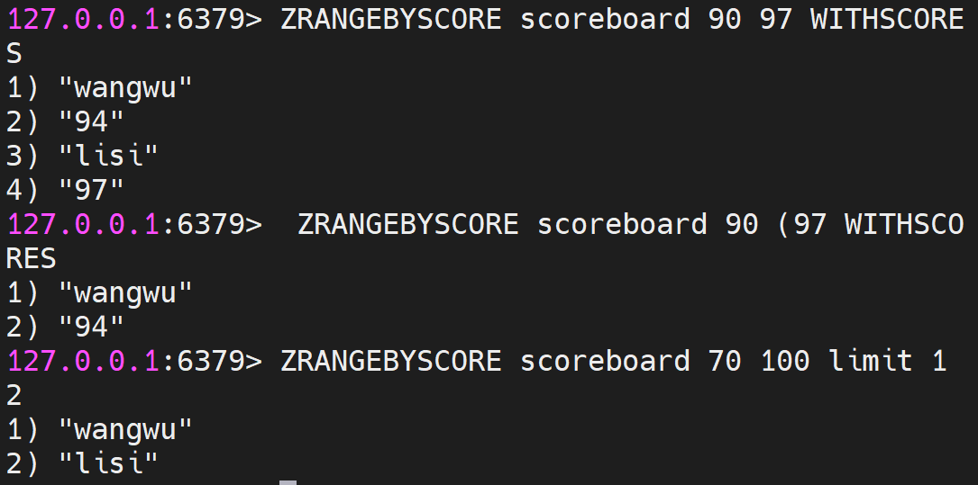 Set<String> zrangeByScore3 = stringRedisTemplate.opsForZSet().rangeByScore(scoreboardKey, 70, 100, 1, 2);