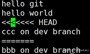 <<<<<<<,=======,>>>>>>>来标记出不同分⽀的冲突内容