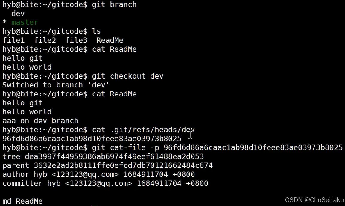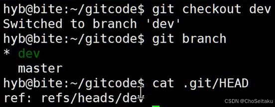 HEAD已经指向了dev,就表⽰已经成功的切换到了dev