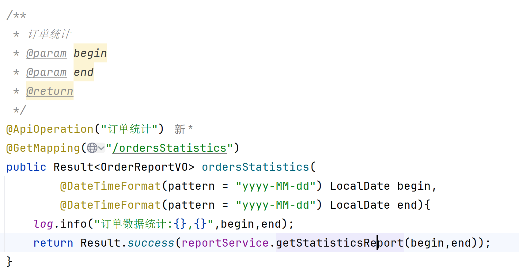 public OrderReportVO getStatisticsReport(LocalDate begin, LocalDate end) {
