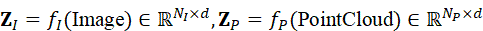Z I = f I ( Image*)∈* RN I ×d , Z P = f P ( PointCloud*)∈* RN P×d