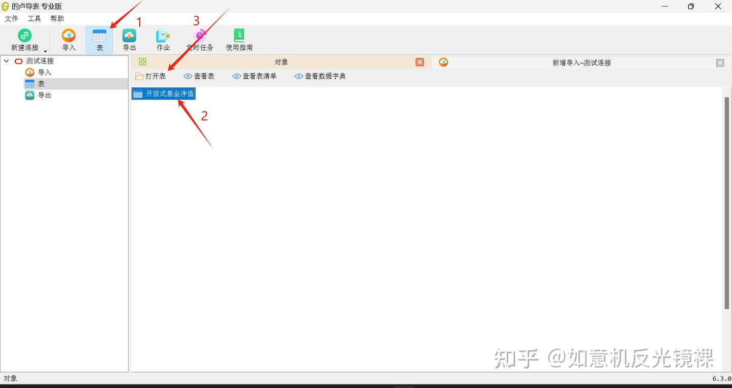 点击表-选中表名-点击打开表即可预览导入的表数据