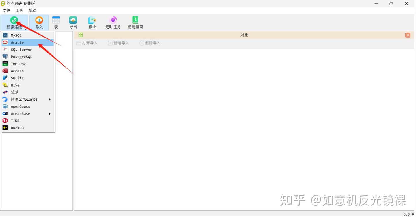 打开***的卢导表***工具,点击新建连接,选择Oracle