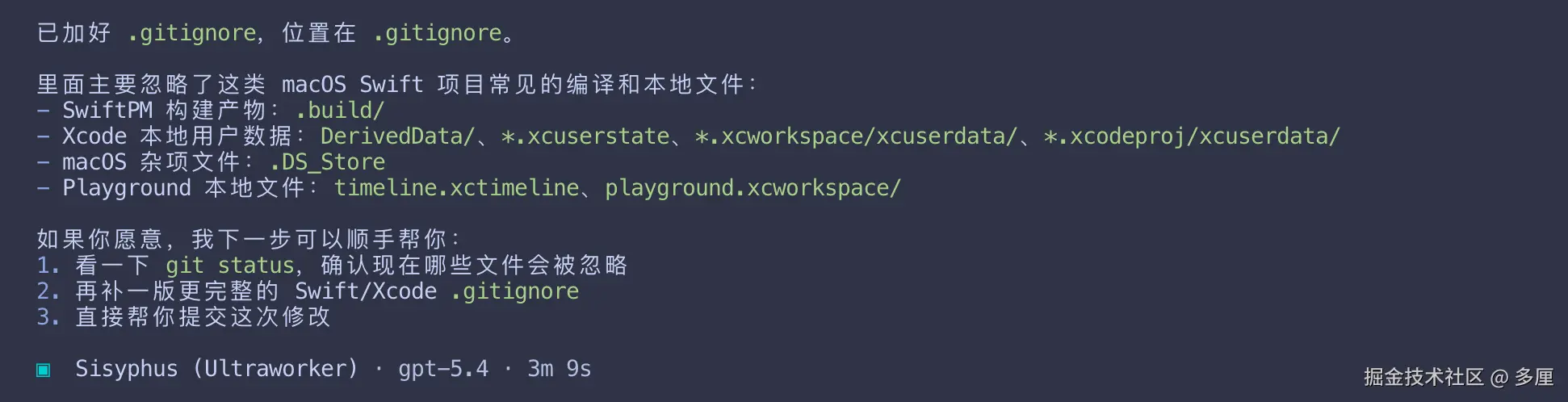 这是一个mac swift 项目, 给项目增加一个 .gitignore 文件用来忽略项目中的编译文件