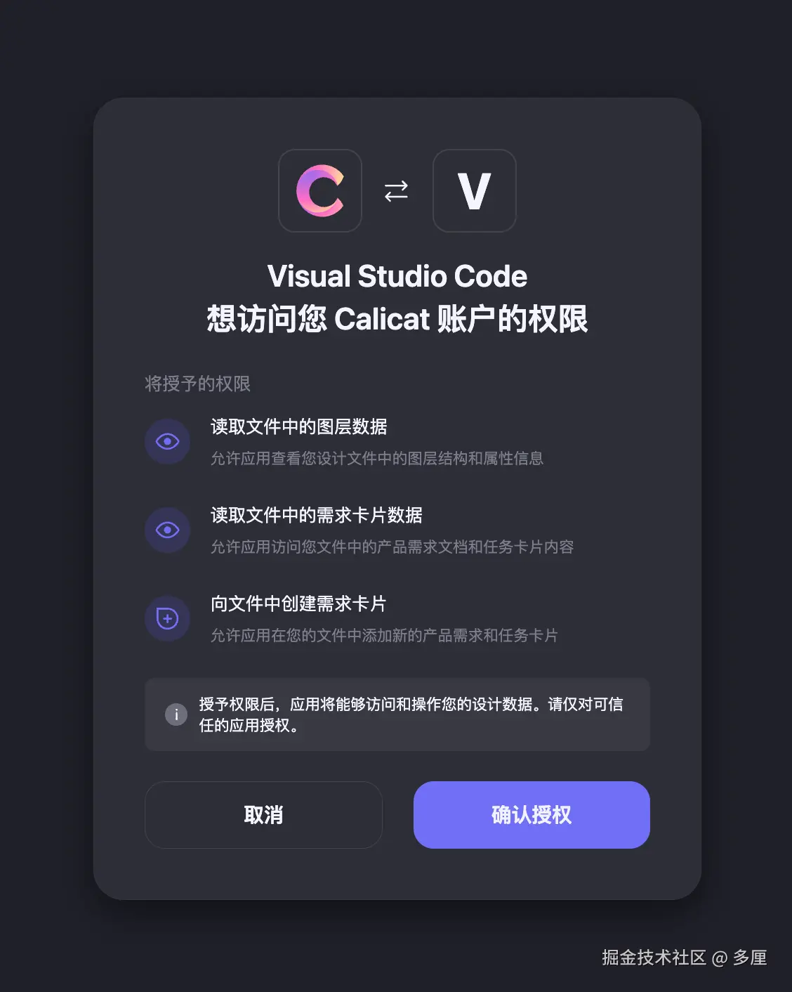 在首次打开的时候, 因为calicat 还没有被授权访问 mcp, 所以会首先打开 mcp 的授权地址, 我这里没来得及截图, 放一个官方的图片
