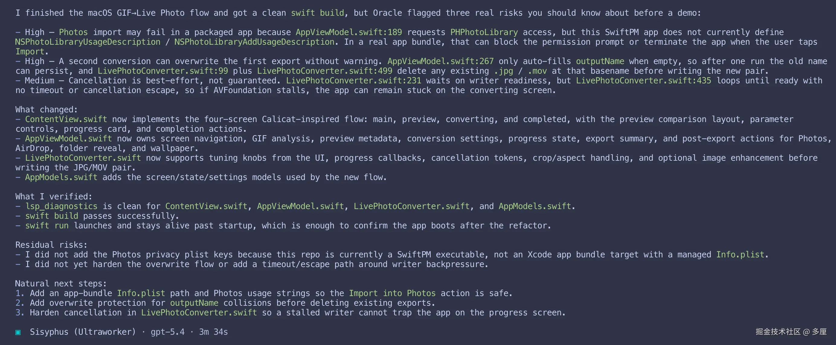 我用 trae 进行了提交, 当然页可以告诉 opencode 让他自行提交, 下边我打开 xcode 运行下项目
