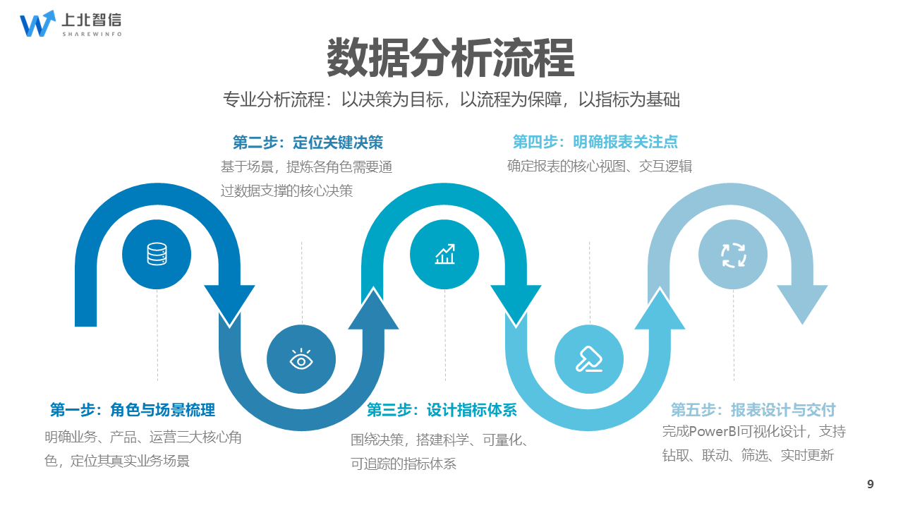 要打破僵局,不能只靠买软件,必须建立一套专业的数据分析流程 :以决策为目标 → 以流程为保障 → 以指标为基础