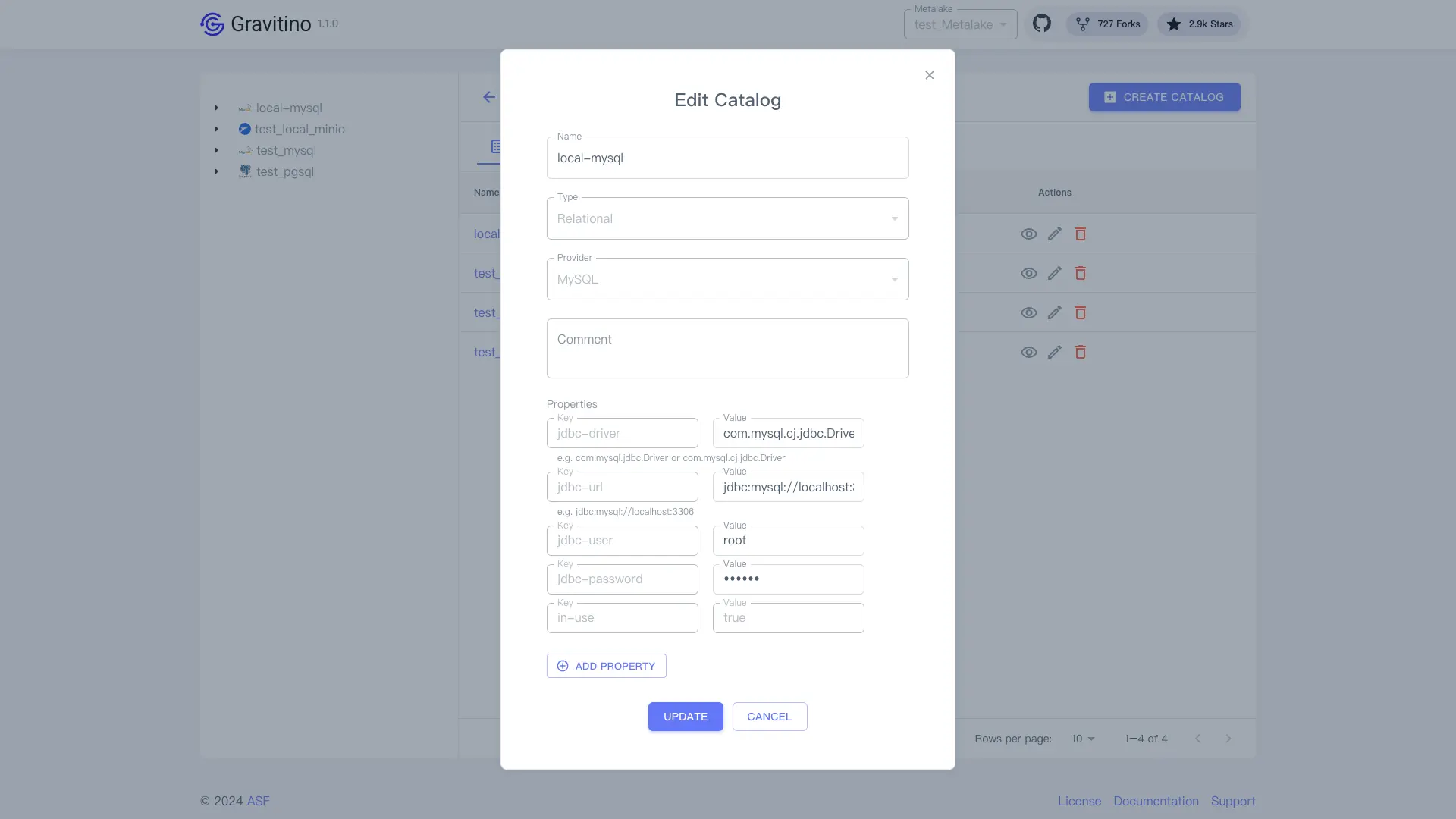 local-mysqlcatalog 下的一个 table 被 Gravitino 管理。