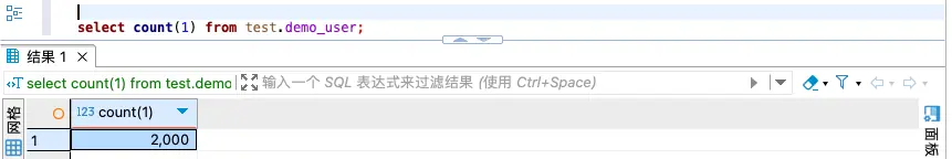 MySQL 中提前创建好目标表 test.demo_user,建表语句如下:
