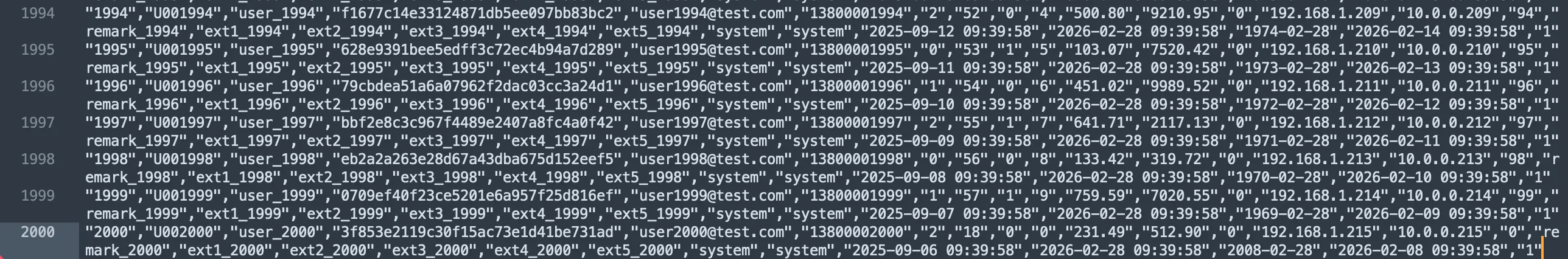本次测试用例是csv作为数据文件,总共是2000条数据。