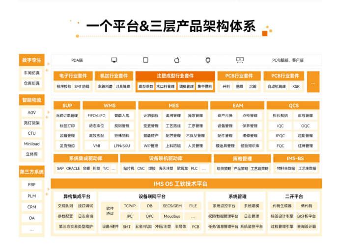 本次IMS V6项目的实施****,涵盖了从供应商管理(SUP)、仓储管理(WMS)、制造执行(MES)、设备物联网(IoT)、设备资产管理(EAM)到质量管理(QMS) 的多个系统模块,构建覆盖采购、入库、生产、质检、包装、发货等全链条的智能化管理体系。****