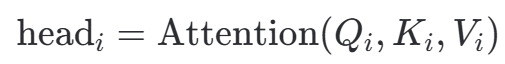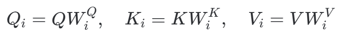 对于每一个头 i,使用不同的权重矩阵对原始的QKV进行线性变换
