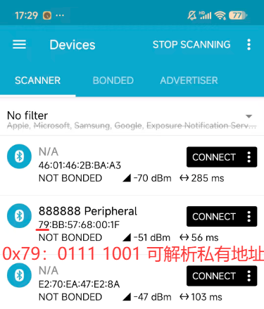对于我们实际手机扫描到公共地址的设备,如下图所示: