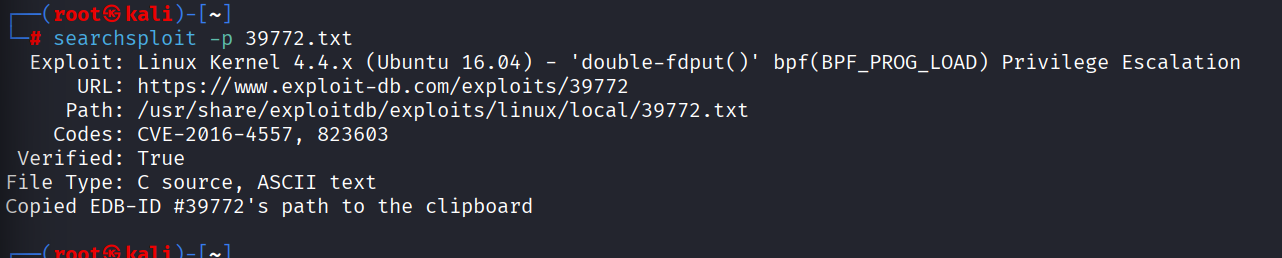 先转到39772目录下面,可以列一下文件,可以看到有个exploit的tar包,这就是我们要利用的exp,解压一下: