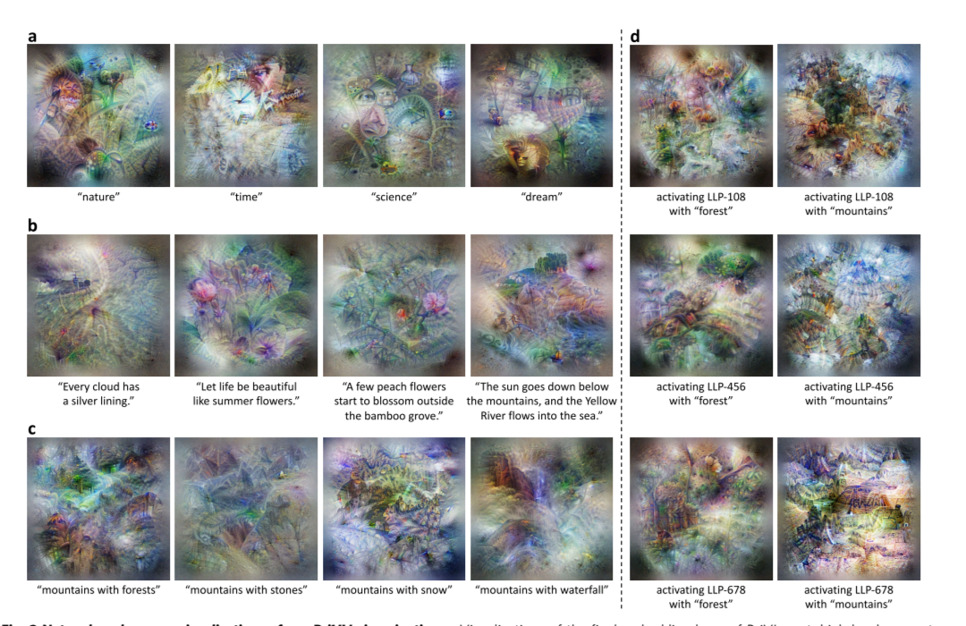 本研究开发了名为BriVL的大规模多模态基础模型,在包含6.5亿图像-文本对的弱语义关联数据集上进行了高效训练。通过神经网络可视化和文本到图像生成,论文展示了模型学习到的对齐图像-文本嵌入空间。更重要的是,论文可视化了多模态基础模型如何理解语言,以及如何对词汇和句子进行想象或联想。