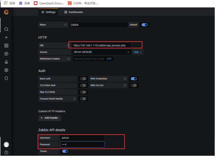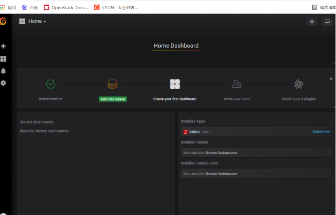 root@server plugins\]# cd /var/lib/grafana/plugins/ \[root@server plugins\]# grafana-cli plugins install alexanderzobnin-zabbix-app installing alexanderzobnin-zabbix-app @ 4.0.1 from url: https://grafana.com/api/plugins/alexanderzobnin-zabbix-app/versions/4.0.1/download into: /var/lib/grafana/plugins ✔ Installed alexanderzobnin-zabbix-app successfully Restart grafana after installing plugins . \