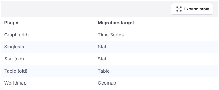 我这边主要涉及到Graph (old)以及Table (old)这两类,Graph (old) 需要迁移到 Time Series,Table (old) 需要迁移到 Table。