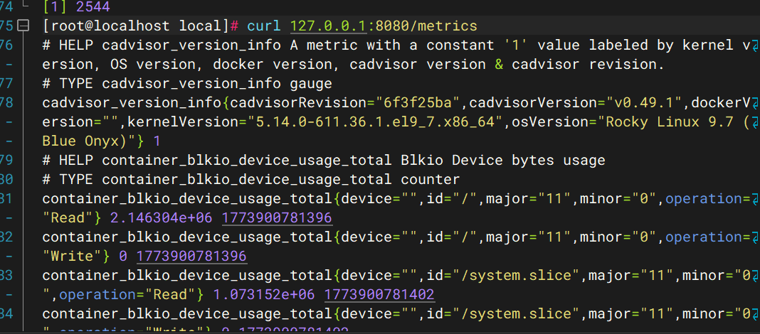 curl 127.0.0.1:8080/metrics