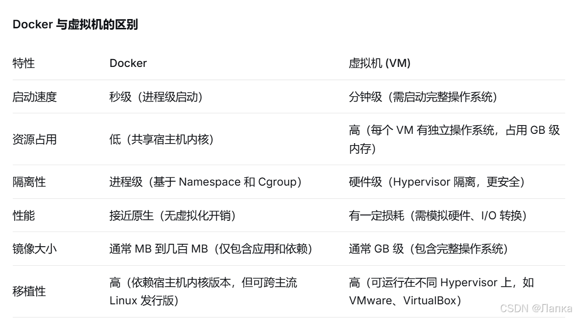 - 轻量高效:容器共享主机操作系统内核,资源占用远低于虚拟机