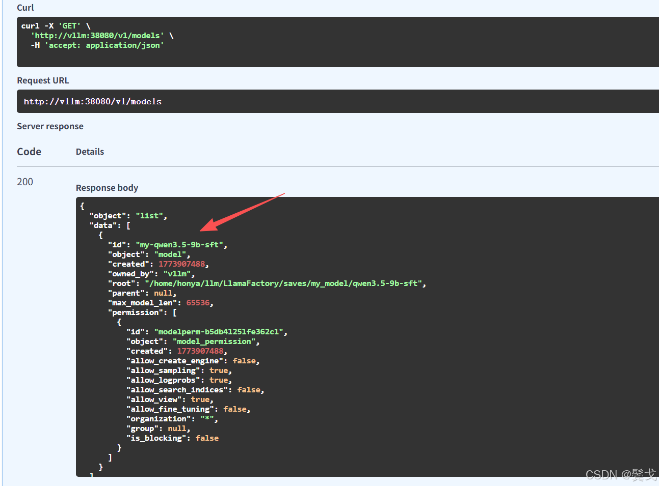 要主动设置模型id:--served-model-name my-qwen3.5-9b-sft