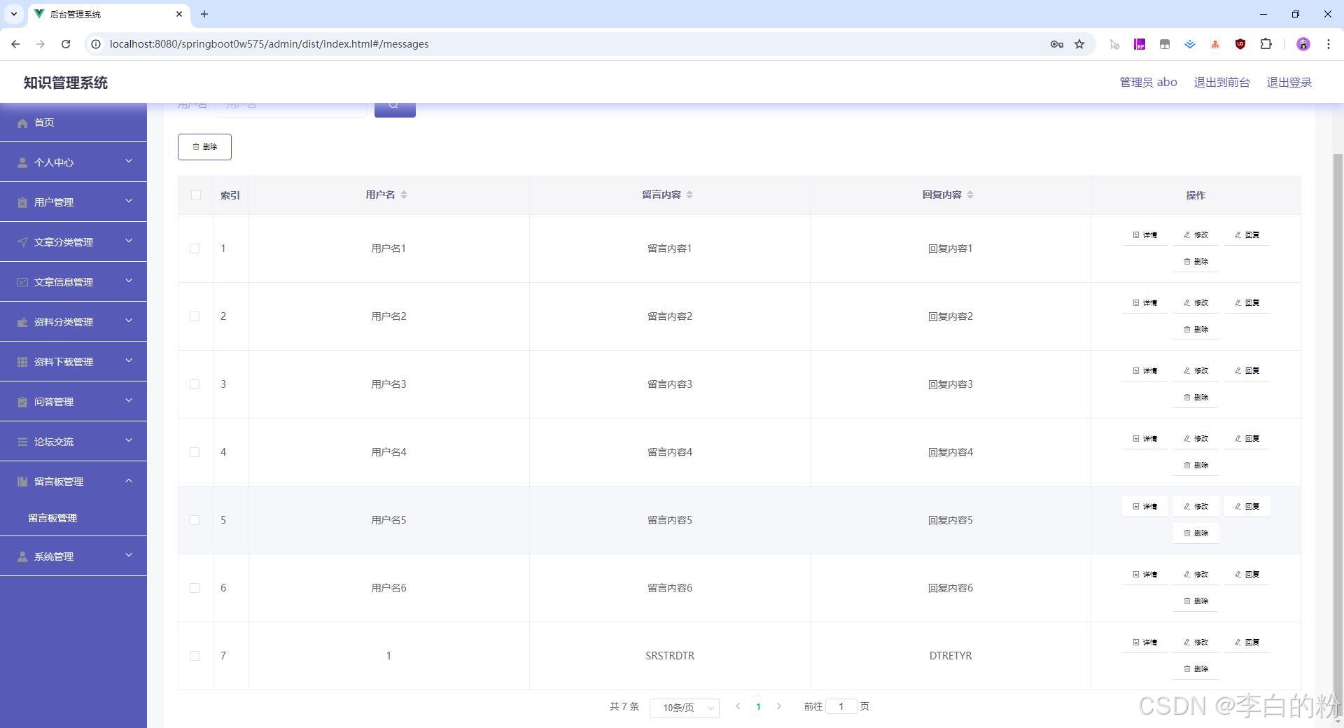 - 管理后台-留言板管理