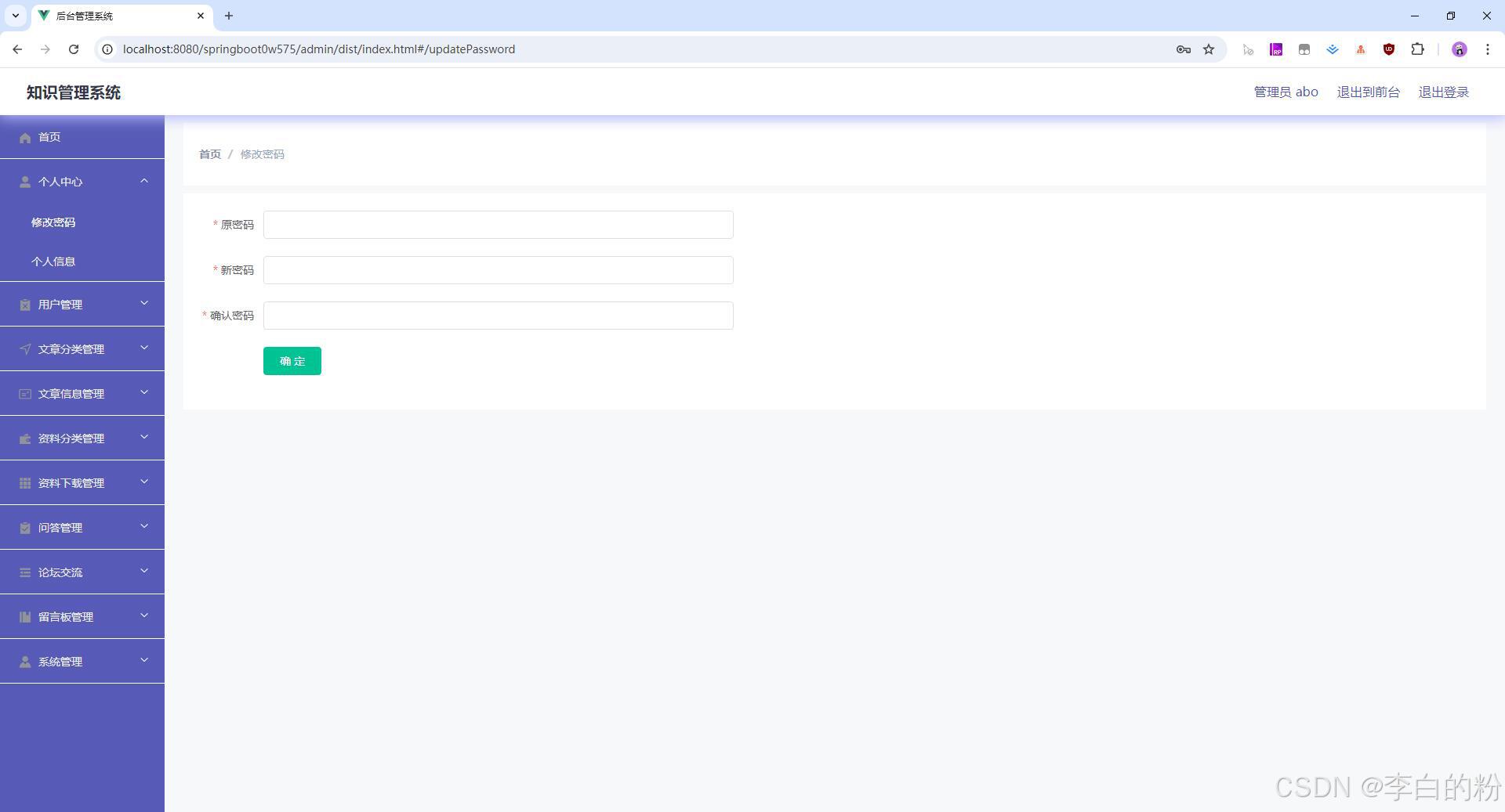 - 管理后台-个人中心