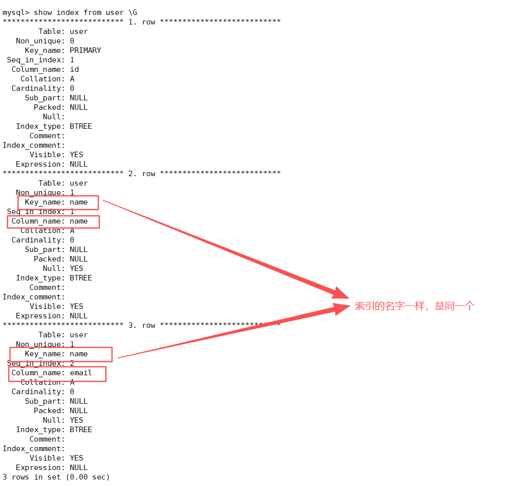可以看到如果是唯一键的话,索引的名字是以设置索引的字段命名的