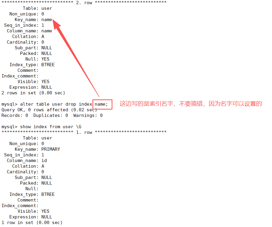 第二种方法-其他索引的删除: alter table 表名 drop index 索引名; 索引名就是show keys