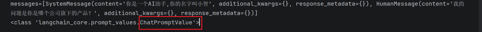 以下示例中的response为调用模版时候的示例4,返回值类型是ChatPromptValue。