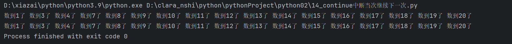 continue:跳过当前循环的剩余代码,直接进入下一次循环。