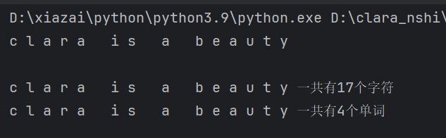 # 需求:已知字符串"clara is a beauty",要求把每个字打印到控制台