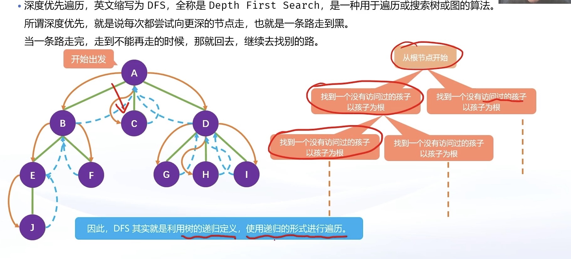 - 遍历子树的时候,重复第一步。