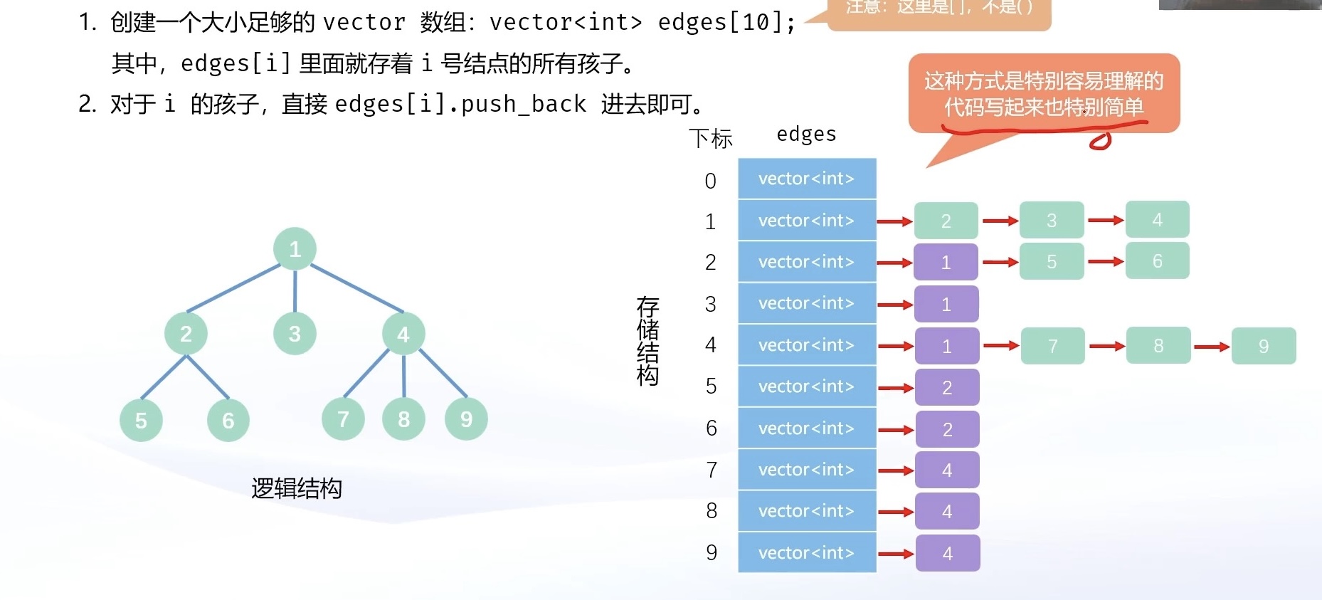 vector<int> edges[N]; // edges[i] 保存着 i 号结点相连的所有点