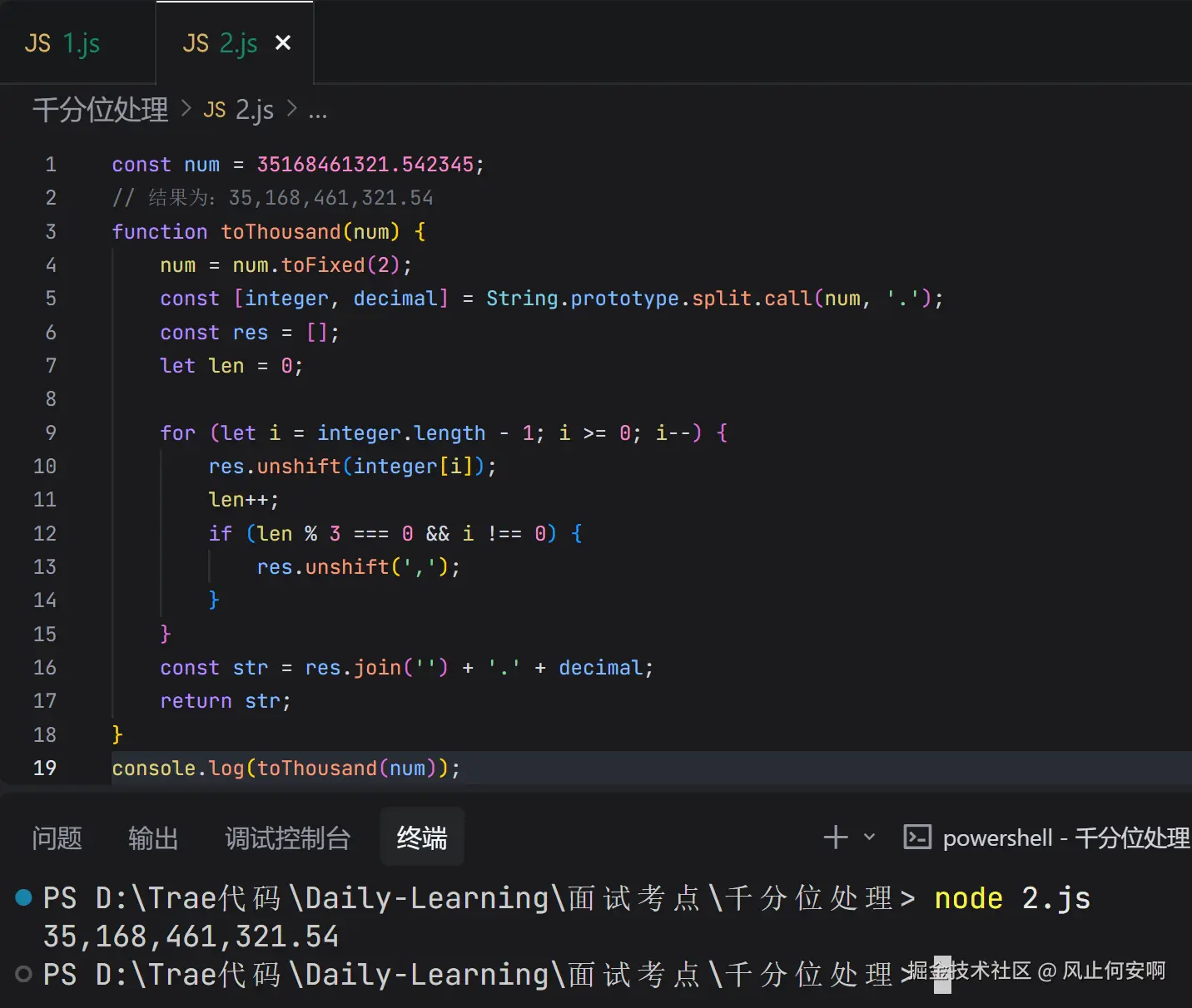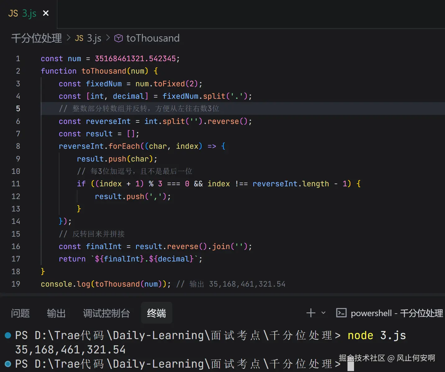 这个方法相当于用数组当 "收纳盒" ,每次把数字往盒子开头放,数够 3 个就塞个逗号进去 ,最后把盒子里的东西连成字符串。用 unshift 比字符串拼接少了点 "倒腾" 的步骤。