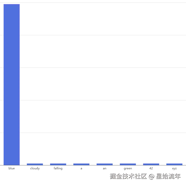 Temperature = 1 :使用原始概率分布。此时概率分布如图示:
