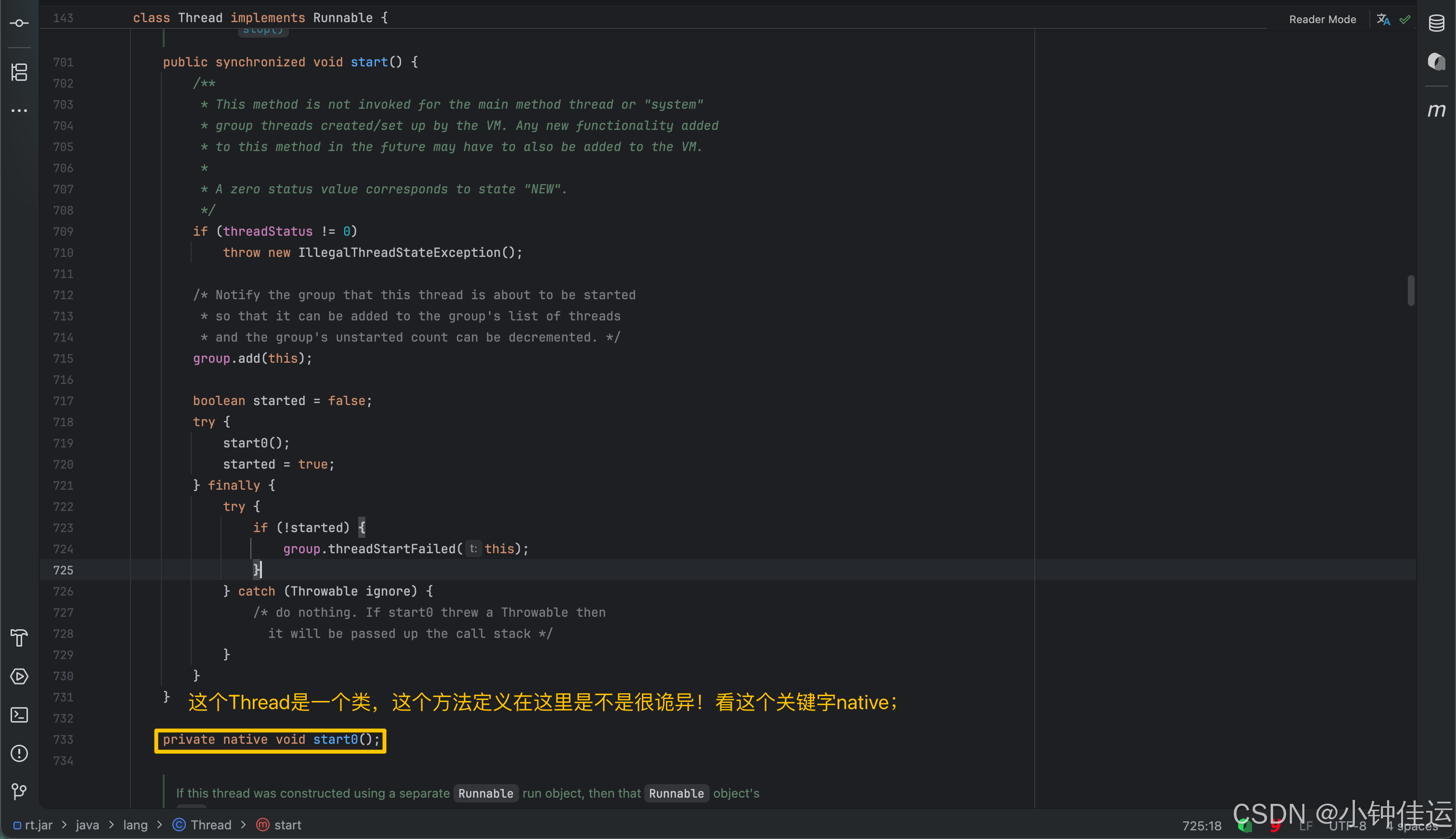 点进去看start方法的源码: