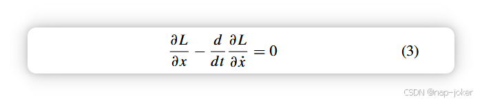 它连接了拉格朗日L关于广义坐标x、时间t和广义动量x的导数。微分方程已被现有研究广泛探讨,如牛顿第二定律[16]、[34]、气体和流体动力学中的伯格斯方程[94]、哈密顿动力学中的汉密顿方程[25]、拉格朗日动力学的欧拉-拉格朗日方程[111]以及描述用于大气对流的非线性混沌系统的洛伦兹方程[112]。光的定律也可以用方程来表示。费马原理考虑光程上的积分。在[106]中,瞬态成像系统中的瞬态I通过积分被描述为