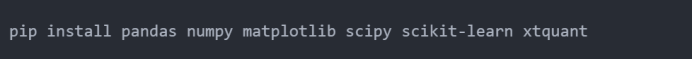 我这里用的行情数据源是 xtquant + miniQMT。 后续示例里会用到一些常见的 Python 库:pandas, numpy, matplotlib,进阶部分还会涉及 scipy, sklearn。在实际运行代码之前,记得先把环境配置好: