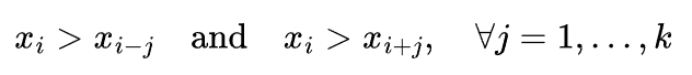 - 局部最大值(order = k)给定序列 ,索引 是局部最大值(order=k)当且仅当: