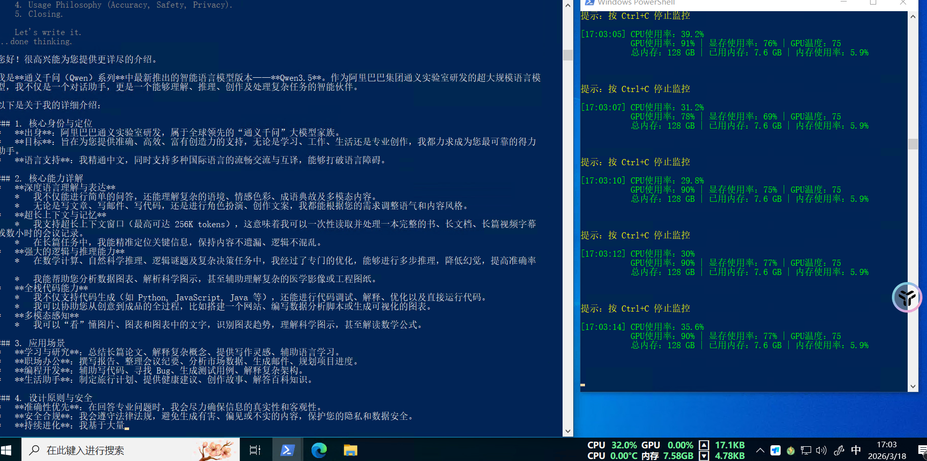 Write-Host " GPU使用率:$gpuUtil% | 显存使用率:$memUtil% | GPU温度:$gpuTemp℃" -ForegroundColor Green